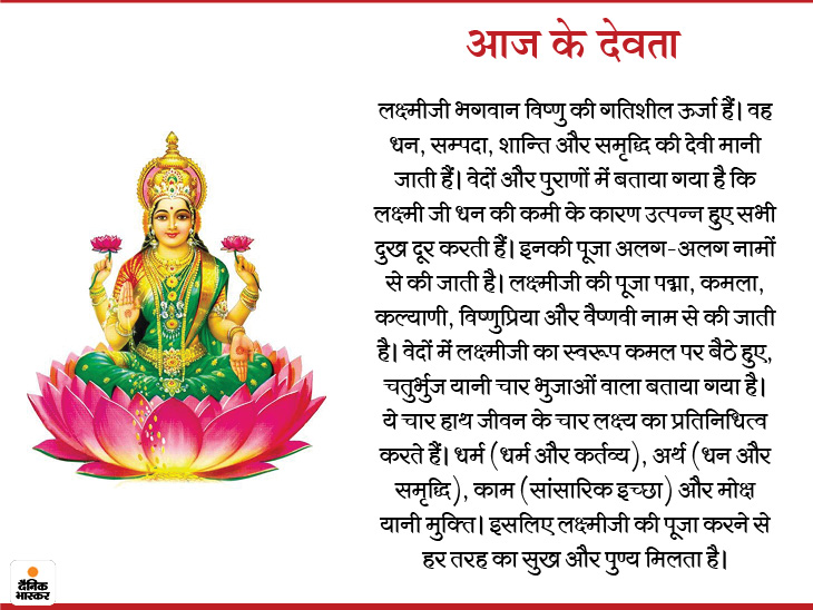 शुक्रवार देवी लक्ष्मी का दिन है। इस दिन खासतौर से मां लक्ष्मी की पूजा की जाती है। शुक्रवार को देवी लक्ष्मी को प्रणाम कर के दिन की शुरुआत करना शुभ होता है। ज्योतिष में शुक्र को स्त्री कारक ग्रह माना जाता है। इसलिए इस दिन देवी लक्ष्मी के साथ शुक्र के मंत्र का जाप करना भी फायदेमंद है। काशी के ज्योतिषाचार्य पं. गणेश मिश्र के अनुसार आज कोई भी जरूरी काम शुरू करने से पहले मां लक्ष्मी को प्रणाम करना चाहिए। खासतौर से लेन-देन, निवेश और अन्य आर्थिक मामलों से पहले देवी लक्ष्मी या शुक्र का मंत्र बोलना चाहिए क्योंकि शुक्र ग्रह का प्रभाव सुख, समृद्धि और धन पर होता है।