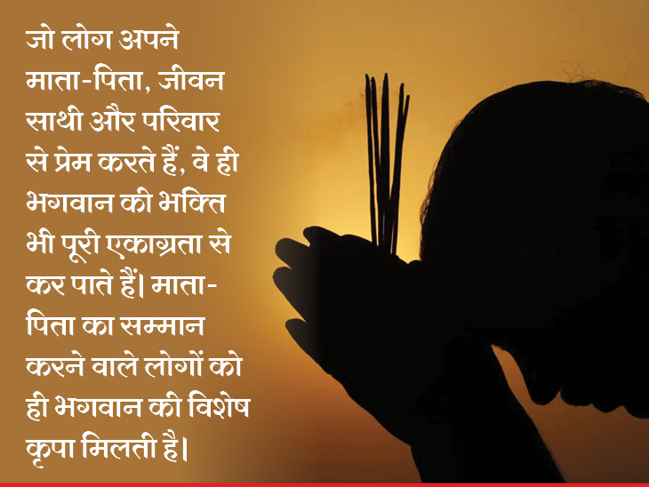 इस प्रसंग की सीख यह है कि हमें अपने परिवार में प्रेम बनाए रखना चाहिए। माता-पिता का सम्मान करें और जीवन साथी के प्रति समर्पण का भाव रखेंगे तो हमारा मन शांत रहेगा। स्वार्थ की वजह से मन अशांत हो जाता है, इससे बचना चाहिए। शांत मन से ही भगवान की भक्ति भी आसानी से की जा सकती है।